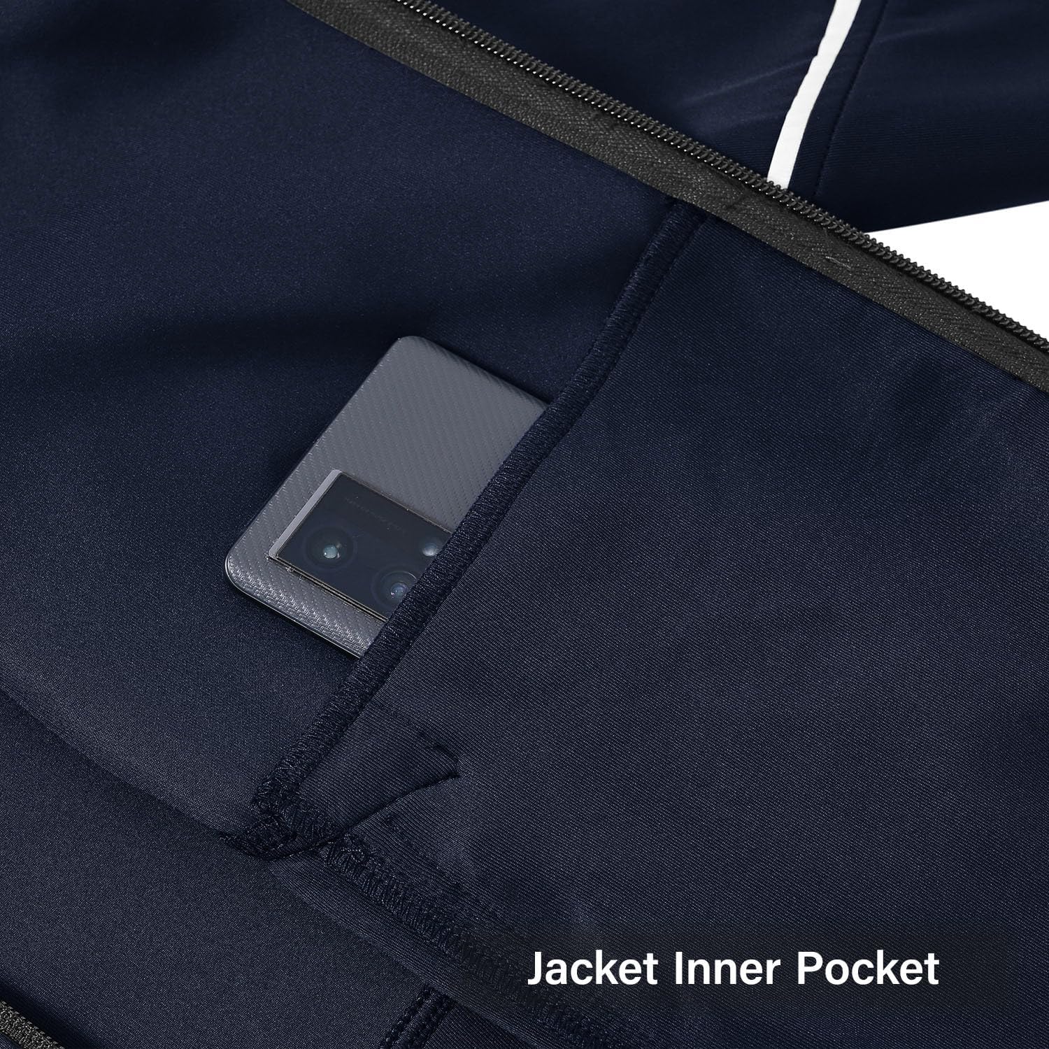 Jacket Pockets: The full-zip jacket features not one, but two deep, secure zipper pockets on the lower front. These are not the shallow, coin-pocket style. They are spacious enough to securely hold your large smartphone, wallet, keys, and AirPods case simultaneously. No more “pocket patting” during a run to see if your belongings are still there. The zippers are easy to operate with one hand, making them perfect for mid-stride access.