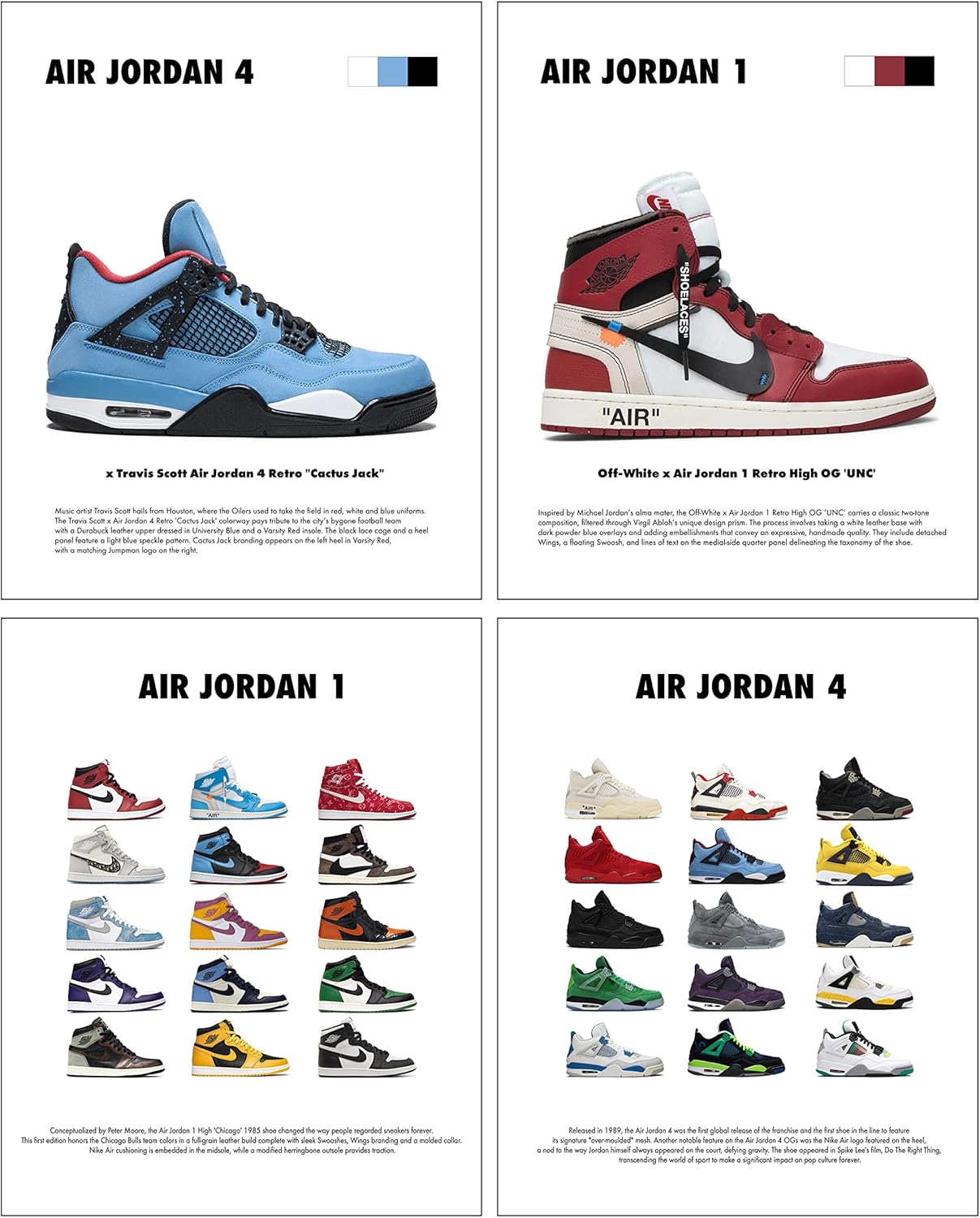Hypebeast Sneaker Posters Unframed Michael Jordan Room Decor Shoes for Teen Boys Guys Men Room 4pcs 8×12 inch